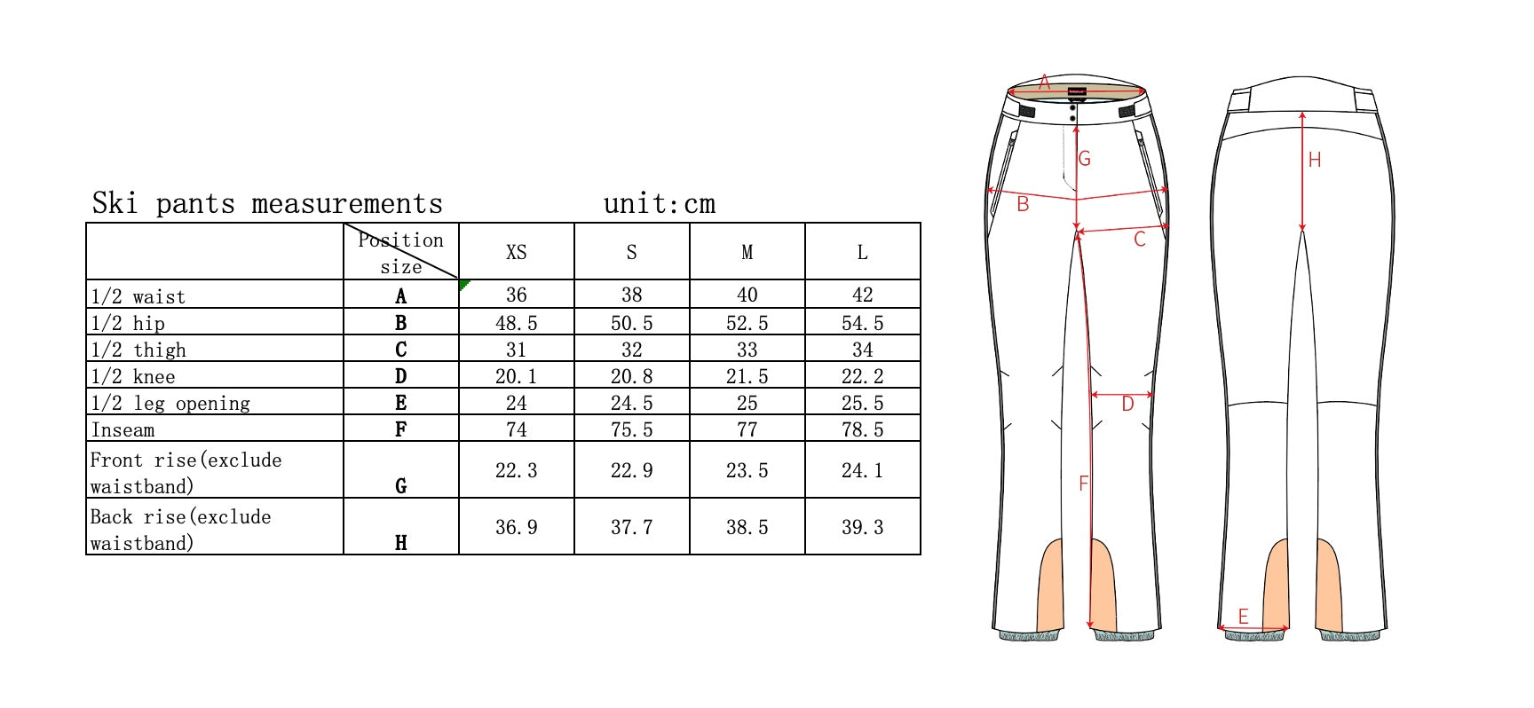• Model is wearing size XS pants.